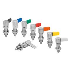 产品说明产品描述:用凸轮旋柄柱塞可防止锁紧位置由于受横向力的作用而发生移动。手柄旋转 180° 柱塞顶销缩回,因此可以改变锁紧位置。凹槽确保手柄保持在此位置,柱塞顶销保持缩回状态。材料: