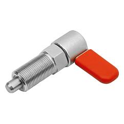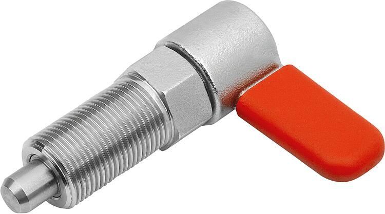 产品说明产品描述:用凸轮旋柄柱塞可防止锁紧位置由于受横向力的作用而发生移动。手柄旋转 180° 柱塞顶销缩回,因此可以改变锁紧位置。凹槽确保手柄保持在此位置,柱塞顶销保持缩回状态。材料:螺纹套筒、和手柄 1.4308。