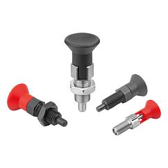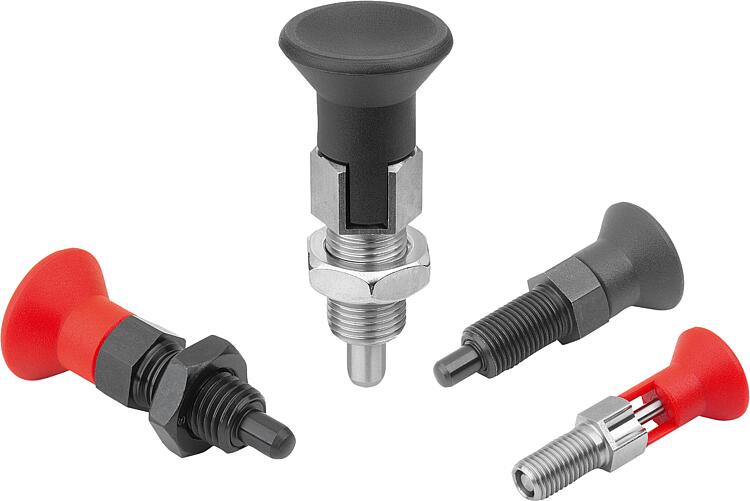 钢制或不锈钢锁紧柱塞,带塑料蘑菇头把手、加长锁紧销和锁紧螺母 |