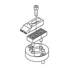 螺纹孔 (F) 用于固定压块。
