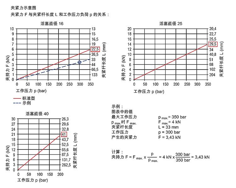 技术参数:- 活塞直径 16 和 25 的最大工作压力:350 bar。
