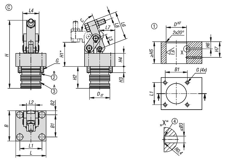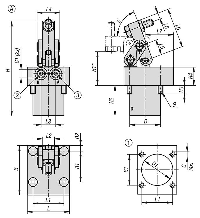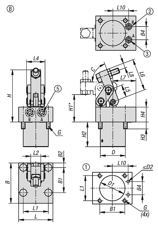 双作用液压杠杆夹,B 型,O 型环法兰连接
