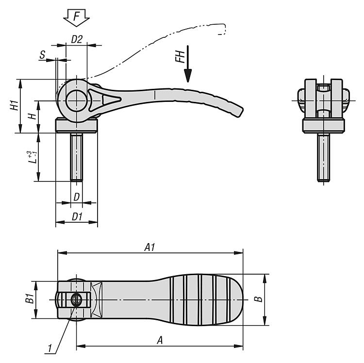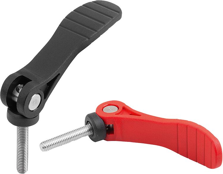 可调式塑料凸轮手柄,带外螺纹,塑料压力垫圈和钢制或不锈钢制双头螺栓