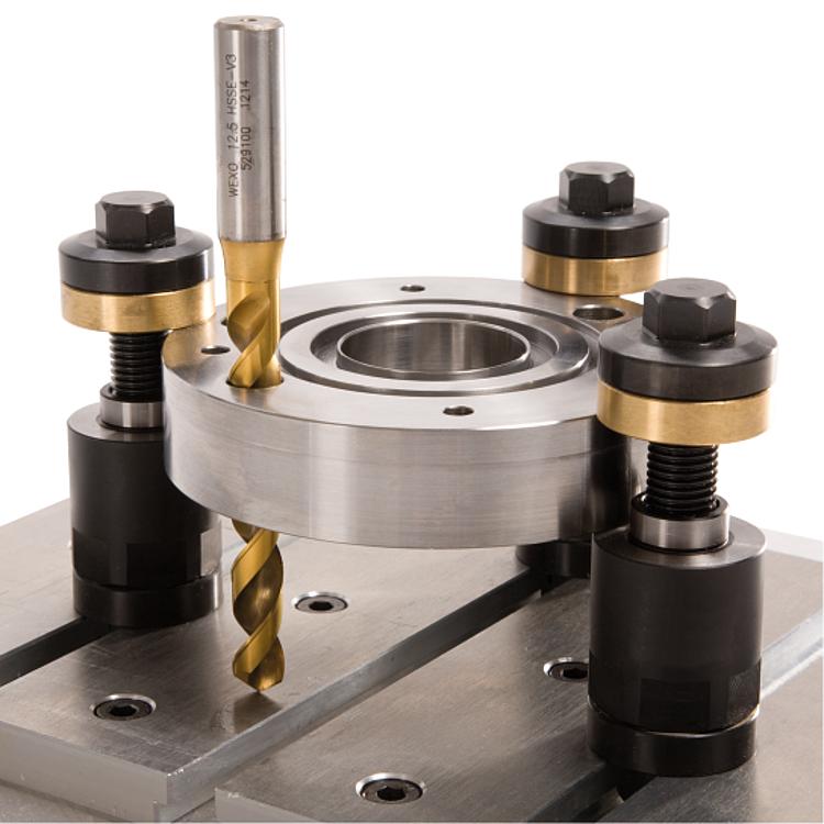 提示:紧固轴杆可通过T形槽螺母直接固定在工作台上。通过较小的高度公差等级 (js6) ,确保了能够并行夹紧在工作台上。