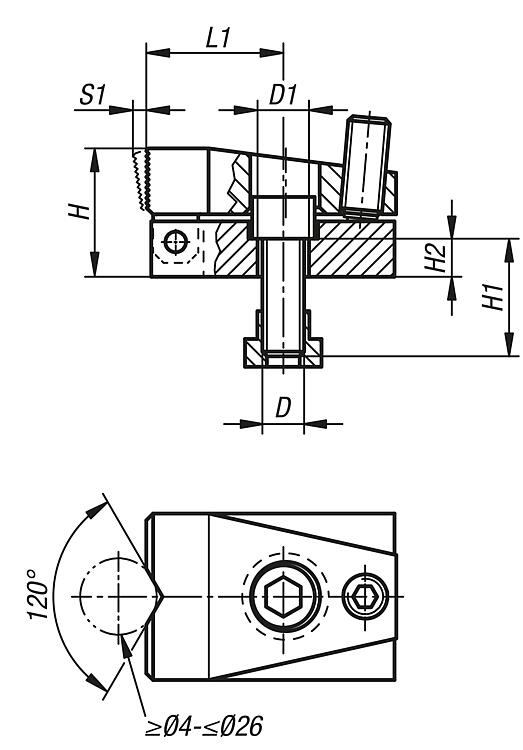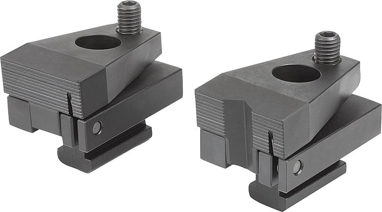 钢制侧方夹紧块,用于 T 型槽,B 型,带棱柱夹钳