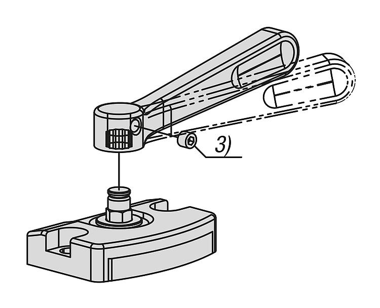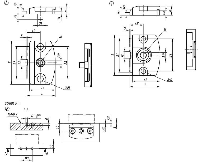材料:调制钢。规格:黑色氧化处理。提示:通过松开埋头螺栓,