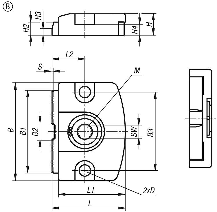 带偏心件的扁平夹紧块,B 型,不带定位销