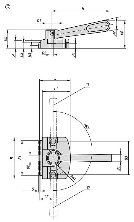 带偏心件的扁平夹紧块,C 型,不带定位销,带锁紧手柄