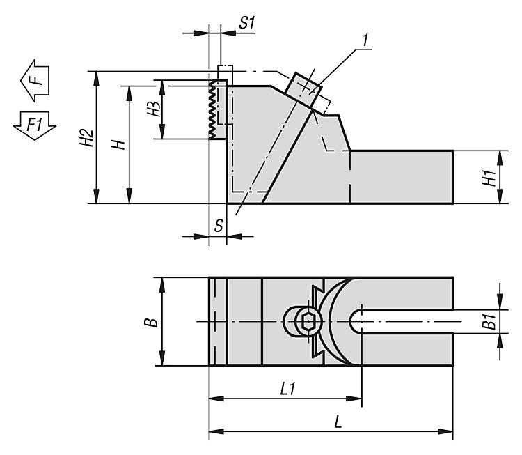 提示:夹钳为可旋转型:用于经加工工件的光滑面,用于毛坯夹紧面的齿面。为了将稳定型夹钳固定在工作台上,我们建议使用两个夹紧螺栓!
