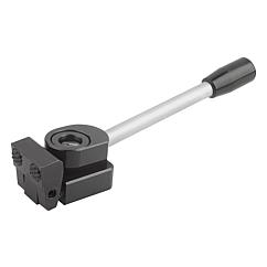 钢制侧方夹紧块,带锁紧手柄和定心衬套,夹钳带两个硬质合金刀片,圆形