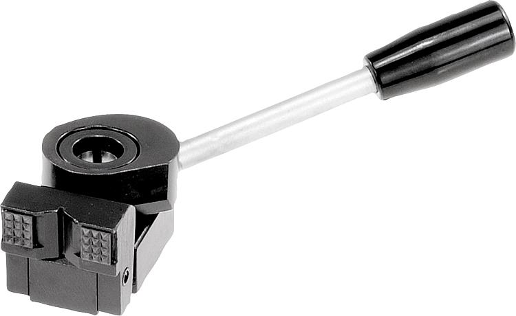 04518_C钢制侧方夹紧块,带锁紧手柄和定心衬套,夹紧块带两个硬质合金插入件,圆形和 V 型 |