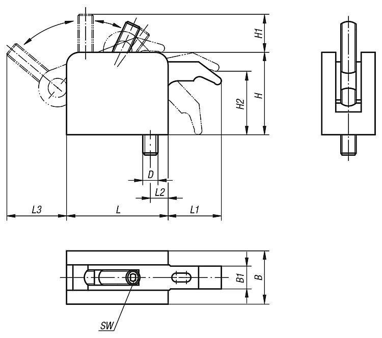 产品说明材料:外壳为铝制,锁紧手柄为不锈钢材质。夹紧螺栓的强度等级为 10.9。规格:外壳为亮色,锁紧手柄经打磨和黑色氧化处理。提示:紧凑型夹具的压把是可以完全回缩的。