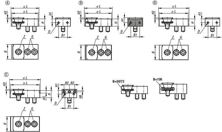 带固定卡爪的楔形夹具,B 型,齿面夹紧面