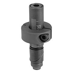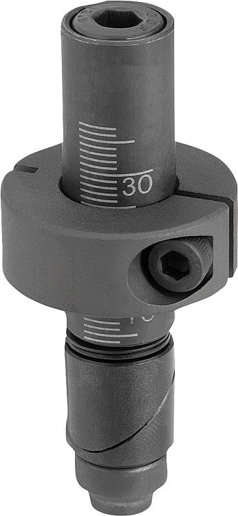 提示:当拧紧螺栓时会将孔中的两个夹紧楔夹紧。通过无级可调的固定环可牢固固定住一个或多个不同厚度的止挡元件。 应用:夹紧销非常适合固定常规的止挡元件,还适用于不同材料厚度、孔径为 16 mm 或 28 mm 的栅格台/焊接台。优点:无级可调夹紧范围从 0-36 mm 到 0-75 mm。