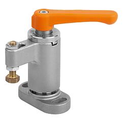 当到达夹紧位置的末端位置时,会听到咔嗒声,同时也会感觉到卡住。材料:主体调质钢。 塑料把手。 黄铜压杆。规格:主体经调质和镀镍处理。 橙色把手。图纸提示:1) 位置放松 2) 预紧行程 3) 起始位置夹紧 4) 位置夹紧