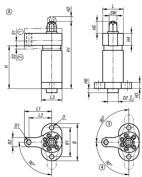 重型转角夹具,加长夹紧行程,可自动化操作,A 型,带夹紧臂