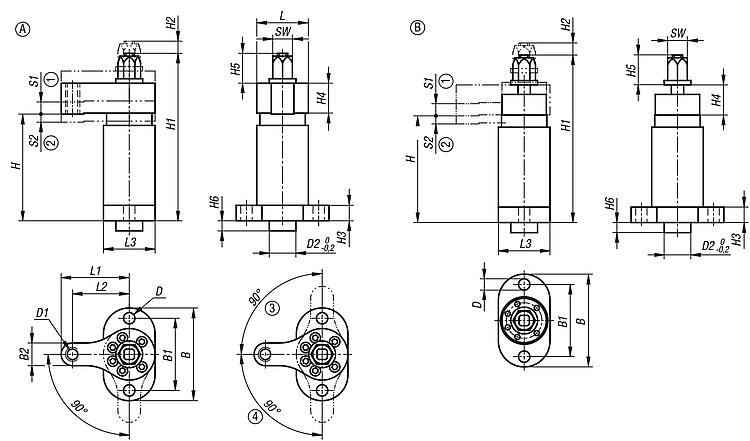 重型转角夹具,加长夹紧行程,可自动化操作,B 型,无夹紧臂