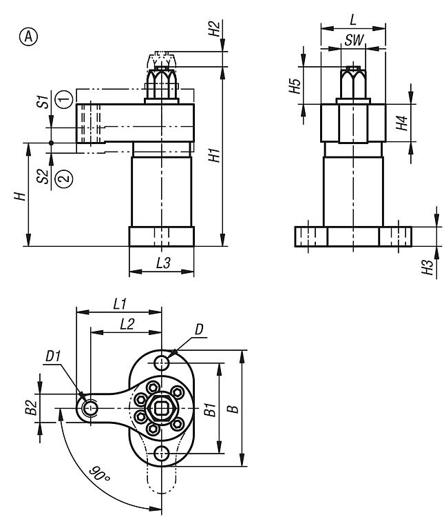重型转角夹具,可自动化操作,A 型,带夹紧臂 |