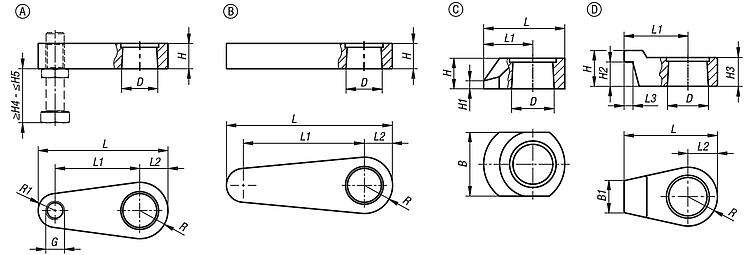 遵守安全说明。技术参数:- A 型和 B 型最大工作压力:200 bar。 - C 型最大工作压力:500 bar。 - D 型最大工作压力:300 bar。装配:安装或拆卸夹紧臂时,必须注意确保没有扭矩传递到转角夹具的活塞杆上。在拧紧或松开固定螺钉时,可以通过反向固定夹紧臂来防止这种情况。