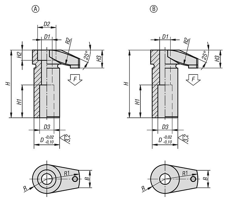 | D1 | D2 | D3 | H | H1 | H2 | H3 | B | R | R1 | R2 | F max. kN | CAD | 配件 | 价格 | 订购 |