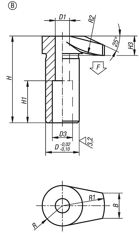 | D1 | D3 | H | H1 | H3 | B | R | R1 | R2 | F max. kN | CAD | 配件 | 价格 | 订购 |