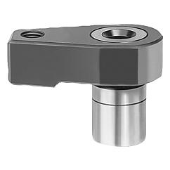 精密钩形夹紧块是夹具中的常用件。夹具主体中设置定位孔。孔深由所需的夹紧高度确定。转角夹紧块下面安装一个支撑件(半径22)作为工件夹紧时的支撑,其可以是扁平的、半圆的或者是V型形的。通过六角螺栓 DIN 933 将其夹紧。