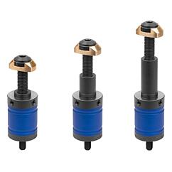 夹紧柱的高度为 50 和 80 mm。夹紧范围为 5 – 25 mm。可使用延长件将夹紧范围增加至 20 -40 mm 或 40 - 60 mm。黄铜夹紧环可防止工件上产生压痕。