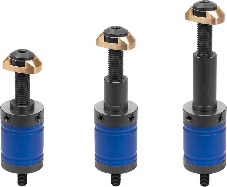 产品说明材料:铝制基体。 钢制夹紧面。规格:基板经蓝色阳极氧化。 夹紧面经硬化和黑色氧化处理。提示:夹紧柱是一种灵活的夹紧系统,可安全有力地夹紧外轮廓规则或不规则的工件。