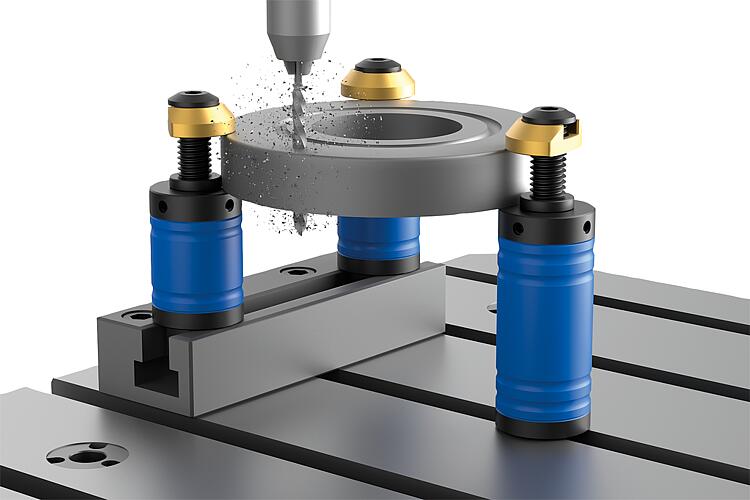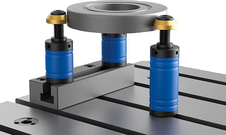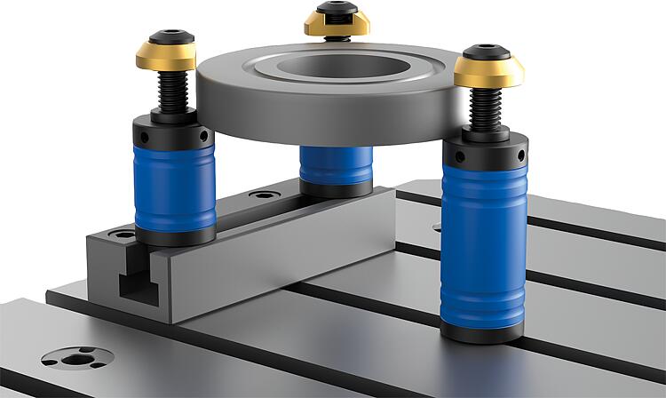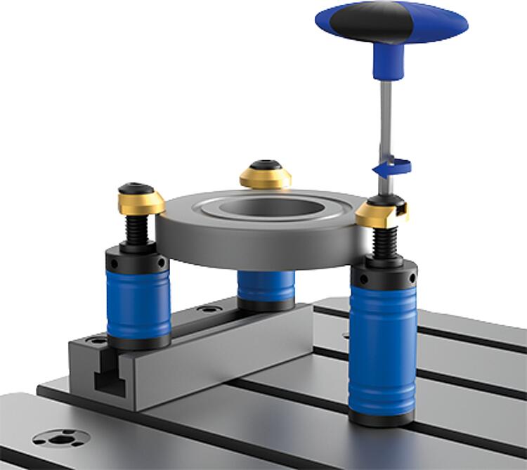夹紧柱可固定在带 T 型槽的机床工作台上,也可直接安装在螺纹孔中。夹紧柱同时起到支撑和止动的作用。