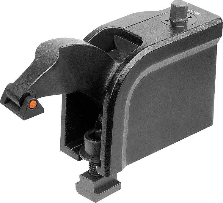 产品说明材料:调制钢。规格:经调质、黑色镀锌处理。提示:当使用不带 DIN508 T 型槽螺母的夹紧元件时,安装板的抗拉强度必须至少为 900 N/mm²。 请勿使用压缩空气进行清洁。应用:通过调整螺栓可无级调整夹紧臂高度,从而夹紧工件。优点:- 无级夹紧。 - 夹持力 12 kN / 16 kN。 - 紧凑型设计。 - 高度刻度可快速预设夹紧高度。 - 牢固安装止动顶销。 - 防尘防屑。 - 弯曲的夹紧臂可确保垂直、工艺可靠地夹紧,并具有确定的扭矩。 - 使用新型快速闭合件,无需螺钉即可将紧凑型电源夹连接到升降件 04627-05 上。附件:具有快速闭合功能的升降件 04627-05。 止动顶销套件 04627-10。