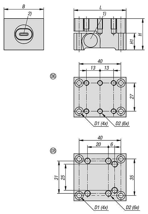 使用圆柱头螺丝 ISO 4762 / DIN 912 通过孔 D1 将力传感器固定到装配台上。只有这样,才能使用螺钉通过孔 D2 将快速夹钳固定到力传感器上。