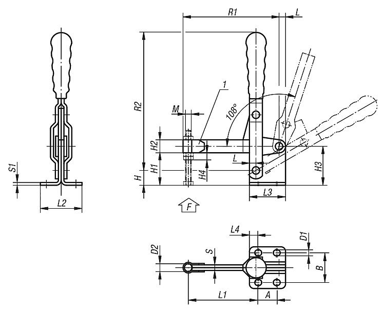 快速夹钳 垂直压紧式 平底座, 活动压头