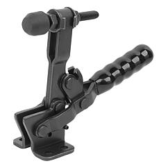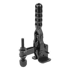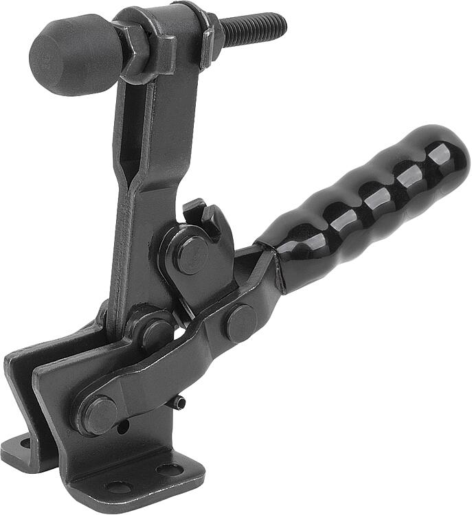垂直压紧式黑色钢制快速夹钳,带卧式底脚和可调压杆