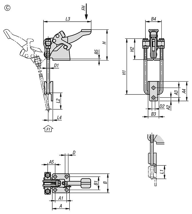 提示:压紧式环箍夹钳尤其适用于快速盖子和挡板的闭合和紧固。每种型号都可以在锁定杆上单独设置调节路径。