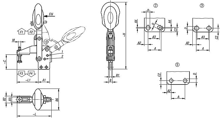 快速夹钳 带安全联锁·垂直压紧式·直底座·可调夹紧轴