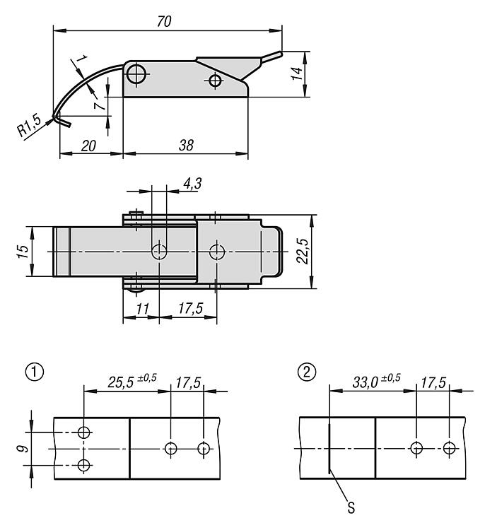 Datasheet 05525 钢制或不锈钢弹片搭扣,承载力可达 500 N,带隐藏式旋拧孔 192 kB