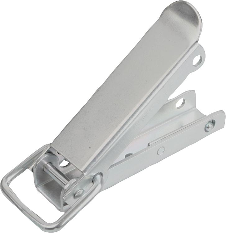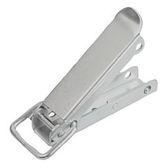 产品说明材料:钢或不锈钢 1.4301。 规格:镀锌,厚膜钝化和面漆密封。 亮色不锈钢。提示:拉环搭扣用于固定盖板、容器盖、机罩等。通过突破死点抵抗振动。 通过弹片弹力提供锁紧力。