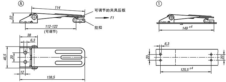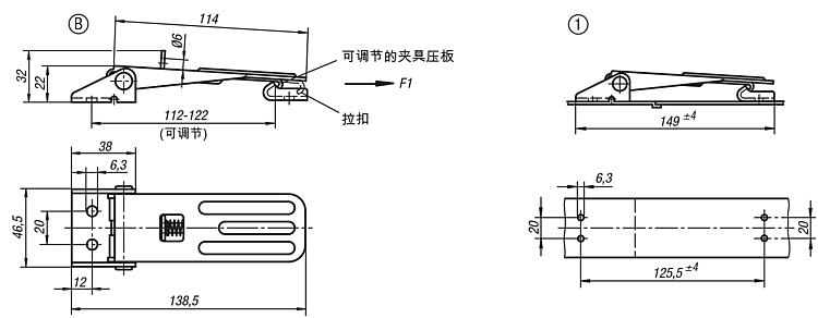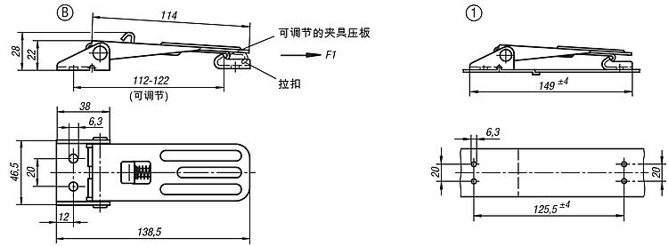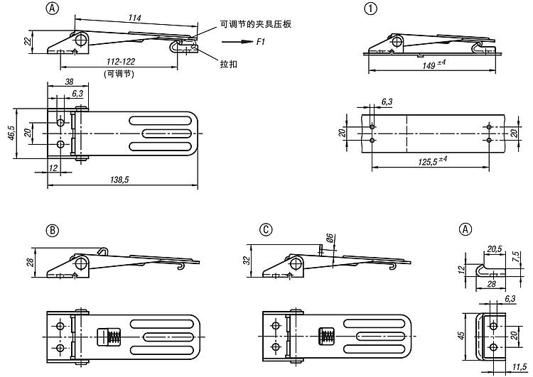 提示:可调节搭扣在工业应用中提供安全锁定的功能。通过突破死点抵抗振动。此外还以极其坚固和安装高度低而著称。