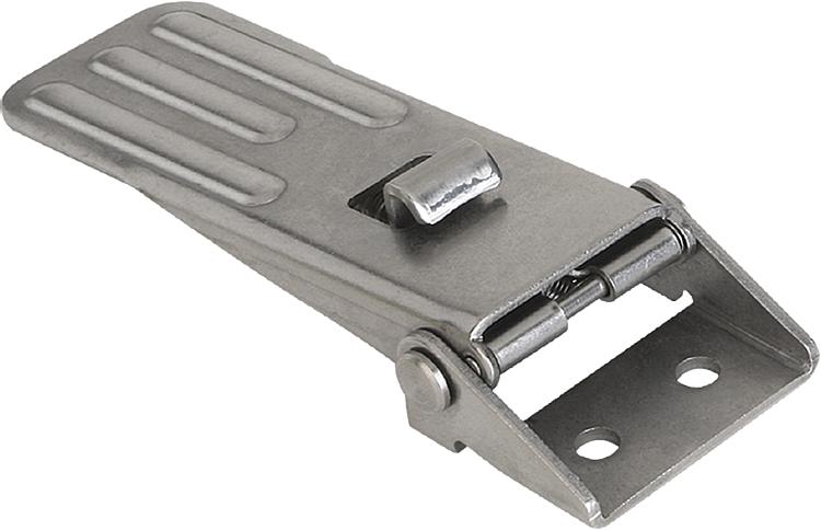产品说明材料:钢或不锈钢 1.4301。 规格:镀锌,蓝色钝化处理。 亮色不锈钢。提示:可调节搭扣在工业应用中提供安全锁定的功能。通过突破死点抵抗振动。此外还以极其坚固和安装高度低而著称。