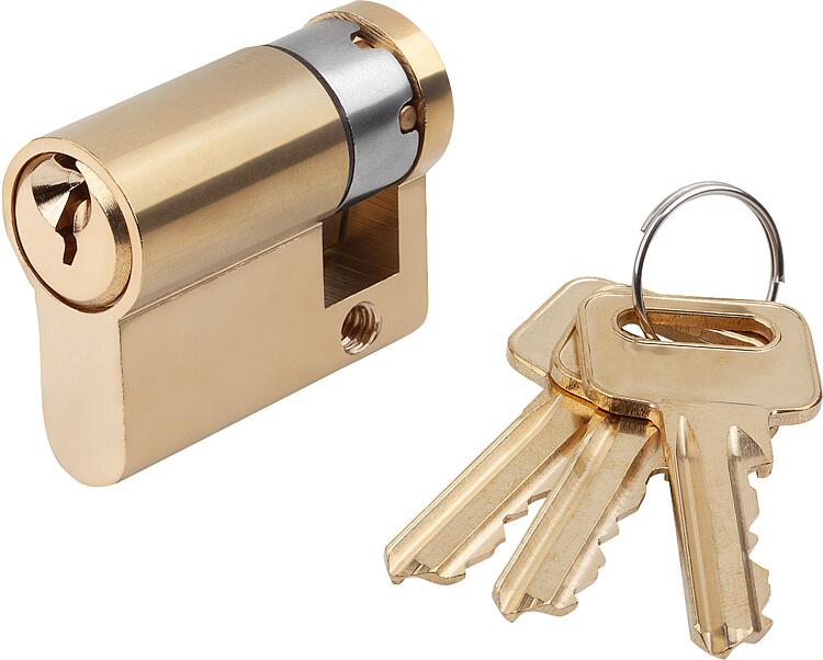 A 型:A 型型材半圆柱锁芯配有两把钥匙。锁闭为不同的锁定机制,即每把锁只能用随附的两把钥匙打开。