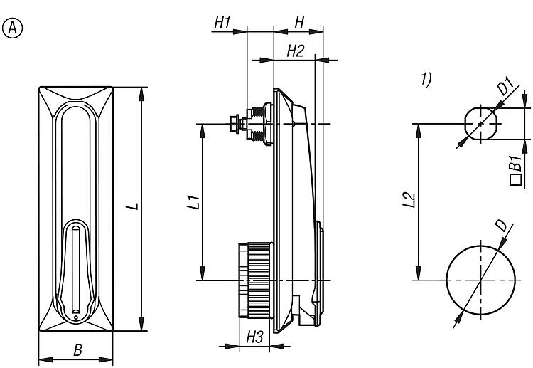 塑料旋转杆,圆形安装孔,安装孔间距 105/130 mm,带盖板,B 型 |