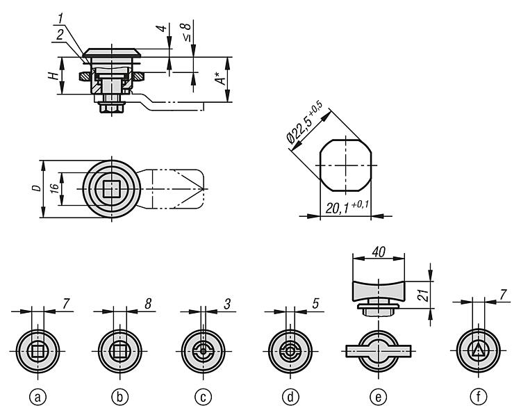 *尺寸 A 由旋转锁销和簧片组合而成,显示的是匹配的簧片。