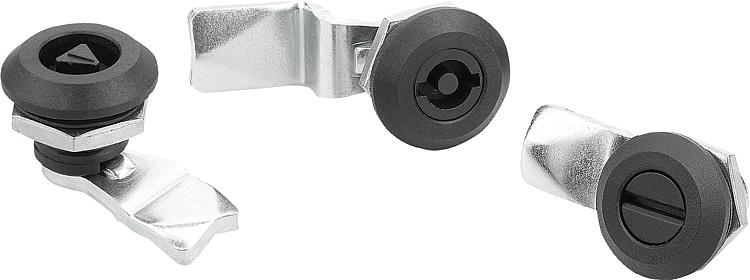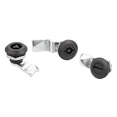 带弹簧加载舌簧的安全旋转锁销。左右侧安装均可,锁模行程 90°。旋转锁销可以预组装(对于较小的 A 型和较大的门厚度时,只能有限实现)。