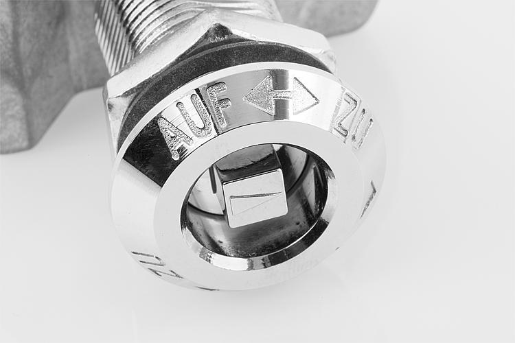 带分级舌簧的旋转锁销主要用于具有更高密封挤压力要求的门和壳体。左右侧安装均可。关闭进程总是顺时针进行。通过致动装置的右转,可逐步增加拧紧行程,并在最大旋转角度为 270°时达到 9.5 mm 的最大行程。