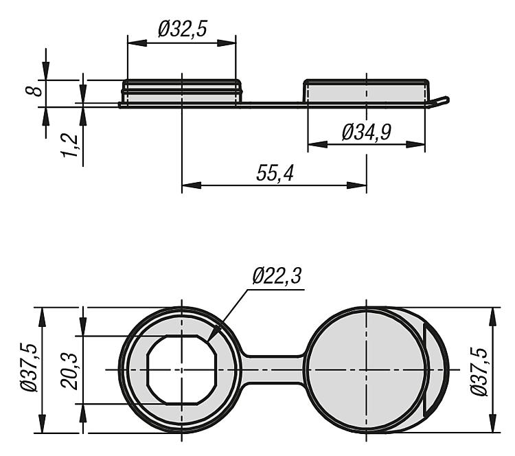 旋转锁销防尘盖的顶部直径最大可为 32 mm。提供了更全面的防尘和防潮保护。使用防尘盖时,旋转锁销的“A”尺寸减小 1 mm。