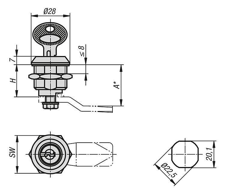 05588可锁定旋转锁销,不锈钢 1.4401,外壳直径 28 mm |