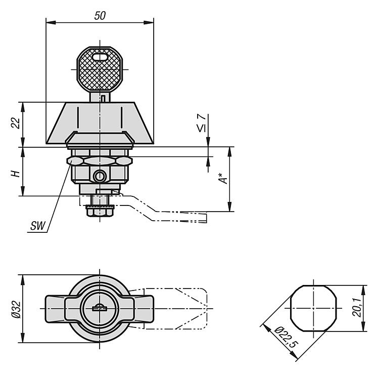 产品说明材料:不锈钢 1.4401。 规格:亮色。提示:旋转锁销,带手柄操作装置。可安装向左扭转或向右扭转,锁闭角度 90°。旋转锁销可预安装。交付时配备标准不锈钢螺母。 这种可锁定的旋转锁销分别提供 2 个钥匙。 在两种状态下(开启和锁定)都可拔出钥匙。锁闭为同时锁定,即每把锁可用同一把钥匙打开 (锁定 1333)。