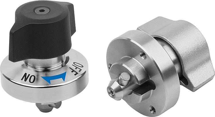 如果超过夹持力,则板与板之间会产生 0.1 mm 以上的间隙。 使用说明:确保旋钮处于“OFF”档位,且轴杆缩回。 将旋转锁销推到或放到预装配的夹紧板上。 将旋钮向下按并拧到档位“ON”上。 完全夹紧时会听到一声咔嗒信号。附件:夹紧板 05592图纸提示:特点: 下载此处为收集信息的 PDF: