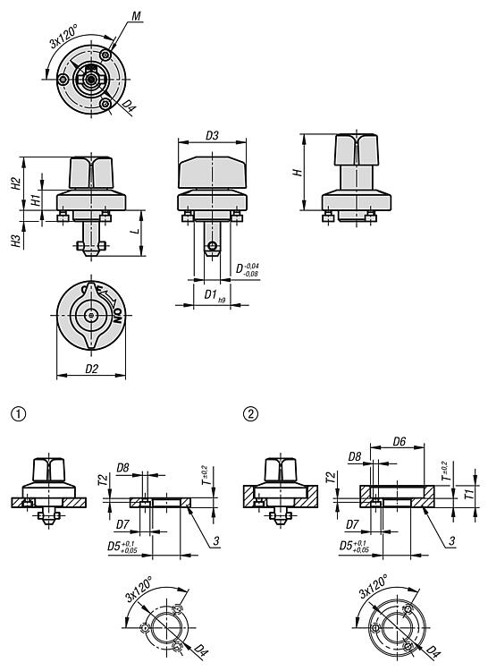 | L | D1 | D2 | D3 | D4 | H | H1 | H2 | H3 | M | D5 | D6 | D7 | D8 | T | T1 | T2 | 夹持力 N | 夹紧力 N | 径向力 kN | 拔出力 F kN | 工作温度 | CAD | 配件 | 价格 | 订购 |