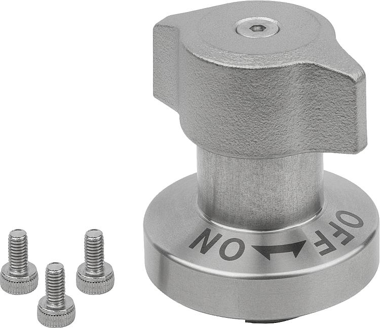 如果超过夹持力,则板与板之间会产生 0.1 mm 以上的间隙。 使用说明:确保旋钮处于“OFF”档位,且轴杆缩回。 将旋转锁销推到或放到预装配的夹紧板上。 将旋钮向下按并拧到档位“ON”上。 完全夹紧时会听到一声咔嗒信号。附件:夹紧板 05592图纸提示:特点: 下载此处为收集信息的 PDF:
